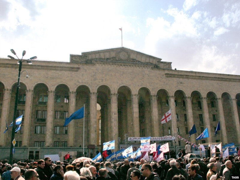Ավելի վաղ այդտեղ ցուցարարները տասնյակ վանդակներ էին տեղադրել` պնդելով, թե Սահակաշվիլին Վրաստանը ոստիկանապետության է վերածել: