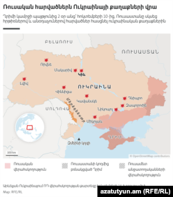 Հոկտեմբերի 10-ից ի վեր ռուսական ուժերի հրթիռային հարվածների հետևանքով ոչնչացվել է Ուկրաինայի էլեկտրակայանների 30 տոկոսը՝ հանգեցնելով էլեկտրաէներգիայի անջատումների ողջ երկրով մեկ, հայտարարել է Ուկրաինայի նախագահ Վլադիմիր Զելենսկին։
