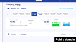FlyOne ավիաընկերության ինքնաթիռն ուղևորվել է Օմանի մայրաքաղաք Մասկատ, Հայաստանի քաղաքացիներն այդ ինքնաթիռով կարող են վերադառնալ Երևան։