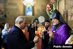 Վարչապետն էլ Երևանի Սուրբ Սարգիս եկեղեցում ներկա է եղել Գարեգին Երկրորդի հրաժարականի պահանջին միացած Նավասարդ արքեպիսկոպոս Կճոյանի մատուցած պատարագին: