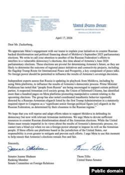 «Անկախ փորձագետների գնահատմամբ՝ Ռուսաստանը թարմացնում է Մոլդովայի իր գործելաոճը, այդ թվում՝ Meta-ի [Alphabet-ի] հարթակների օգտագործմամբ, ազդելու Հայաստանի ժողովրդավարական գործընթացի արդյունքների վրա», - գրում են երկու կուսակցությունների սենատորները իրենց նամակներում:
