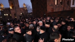 Մայր Աթոռում այս պահին ստեղծվել է հետևյալ իրավիճակը՝ ոստիկանական շղթայից այն կողմում հավաքված են կաթողիկոսի հեռացումը պահանջողները, մյուս կողմում՝ նրան աջակցողները: