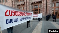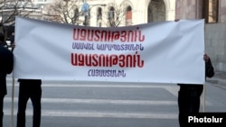 Գործարար Սամվել Կարապետյանի տնային կալանքի դեմ բողոքի հարցով դատական նիստին ընդառաջ նրա առաջնորդած «Ուժեղ Հայաստան» կուսակցության ներկայացուցիչներն ակցիա իրականացրեցին կառավարության դիմաց: