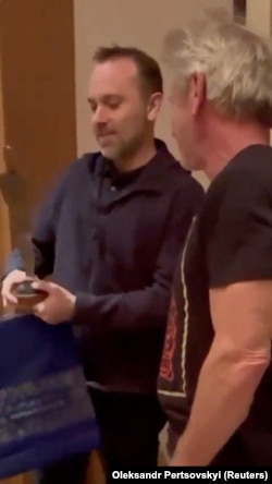Ուկրաինական երկաթուղային ընկերության գործադիր տնօրեն Օլեքսանդր Պերծովսկին X հարթակում հրապարակել է տեսանյութ, որտեղ նա 65-ամյա դերասանին հանձնում է մետաղական արձանիկ, որը ձևով հիշեցնում է «Օսկար» մրցանակը։