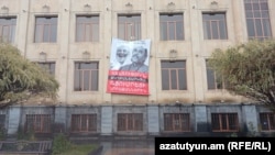 Գյումրիի քաղաքապետարանի շենքի վրա փակցված է պաստառ՝ Բագրատ և Միքայել արքեպիսկոպոսների լուսանկարով: